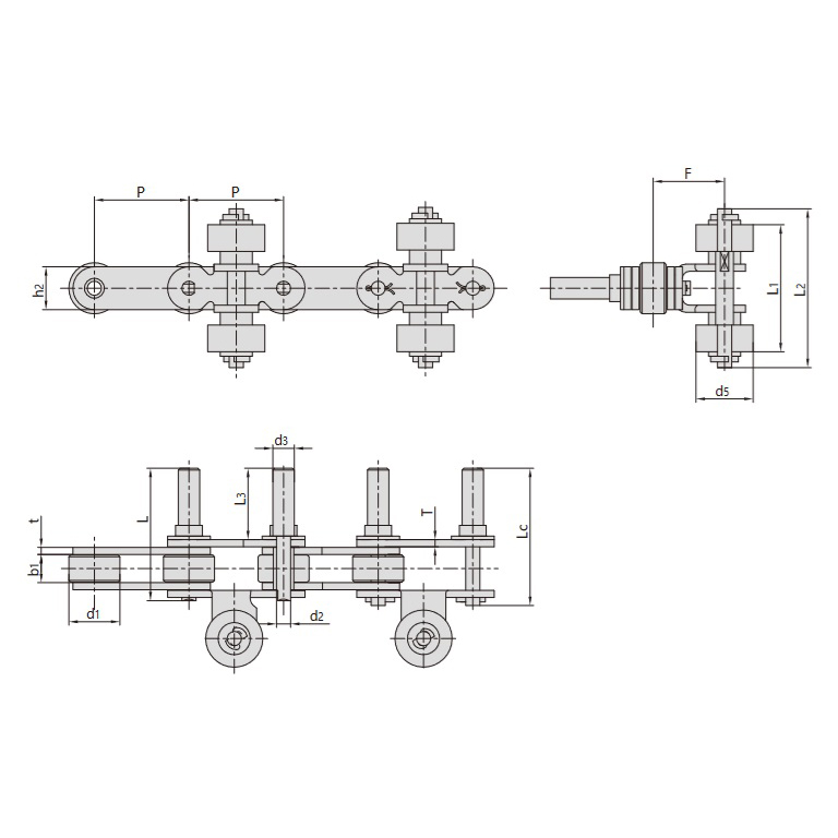 - Skladá sa z reťazových dosiek, čapov, kĺbových krížových spojov a valčekových zostáv (valčeky, ložiská, čapy), ktoré poskytujú flexibilitu, odolnosť a vysokú účinnosť.