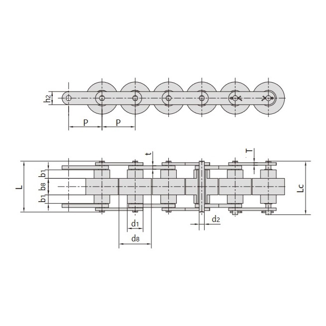 - Konštrukčné vlastnosti:Zahŕňa valčeky, vnútorné a vonkajšie reťazové platničky, čapy a puzdrá. Valčeky priamo podporujú hmotnosť pracovnej platničky a dopravovaných predmetov, zatiaľ čo valčeky na vodiacej koľajnici umožňujú kĺzavý kontakt, čím zabezpečujú plynulý presun materiálu.