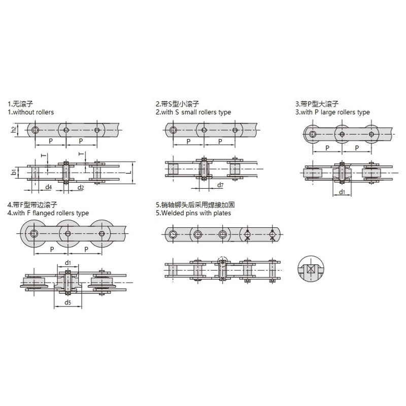 - K dispozícii v prevedeniach bez valčekov, s malými valčekmi typu S, bočnými valčekmi typu F, veľkými valčekmi typu P atď. pre flexibilné prispôsobenie konkrétnym podmienkam použitia.