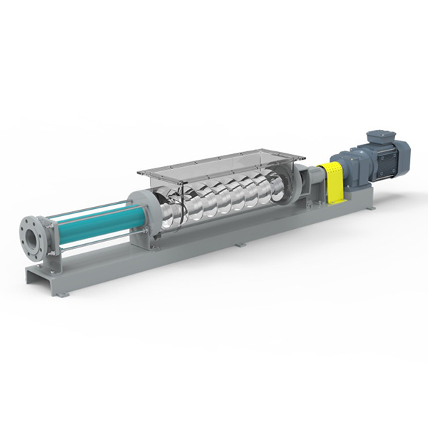 Obdĺžnikový tvar vstupu násypky a horizontálne posúvacie zariadenie tohto jednošnekového čerpadla účinne zabraňujú hromadeniu materiálu na vstupe čerpadla, čím zabezpečujú plynulosť a stabilitu dopravy.